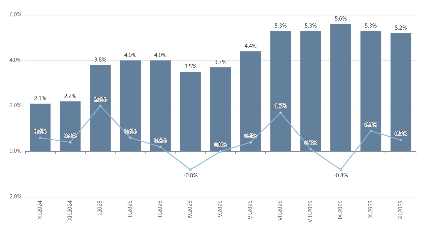 България отбелязва 5,2% годишна инфлация през ноемвриот Персоналдекември 18, 2025 България регистрира 5,2% годишна инфлация през ноември – The Sofia Globe …